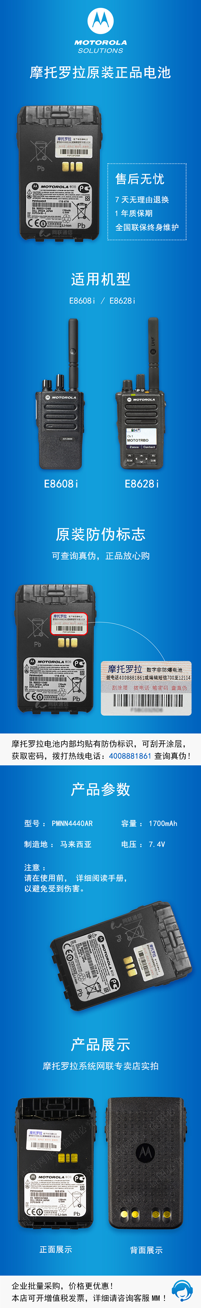 PMNN4440 E8608i/E8628i原裝鋰電池 1700mAh